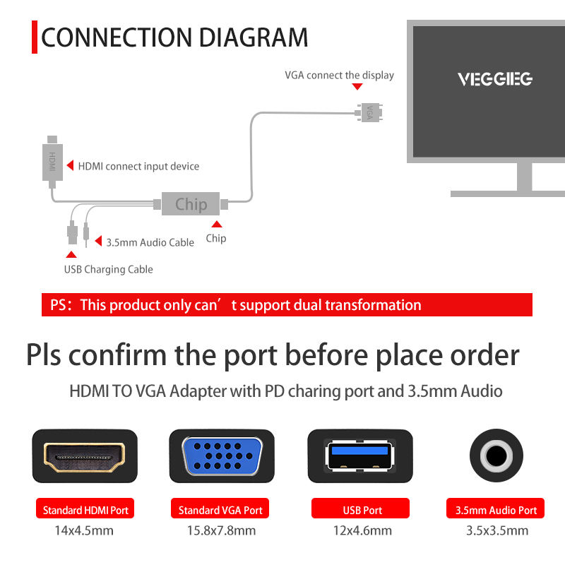 Nombre del producto:HDMI activo dorado 1080P al adaptador de VGA HDMI a VGA