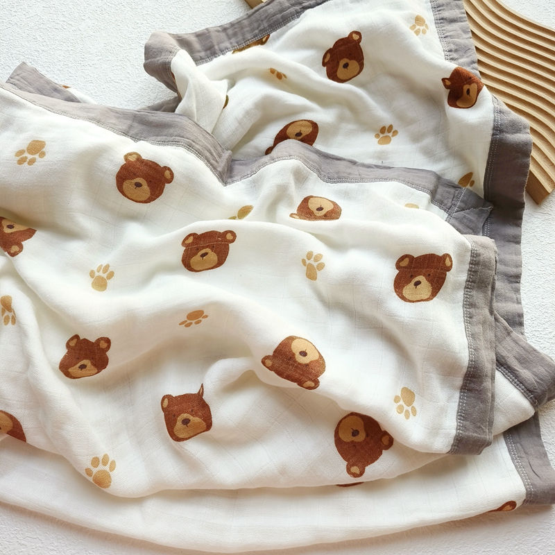 Gots Custom 6 capas 100 algodón orgánico Avacado estampado recién nacido musulmán manta Super suave cubierta edredón bebé muselina mantas