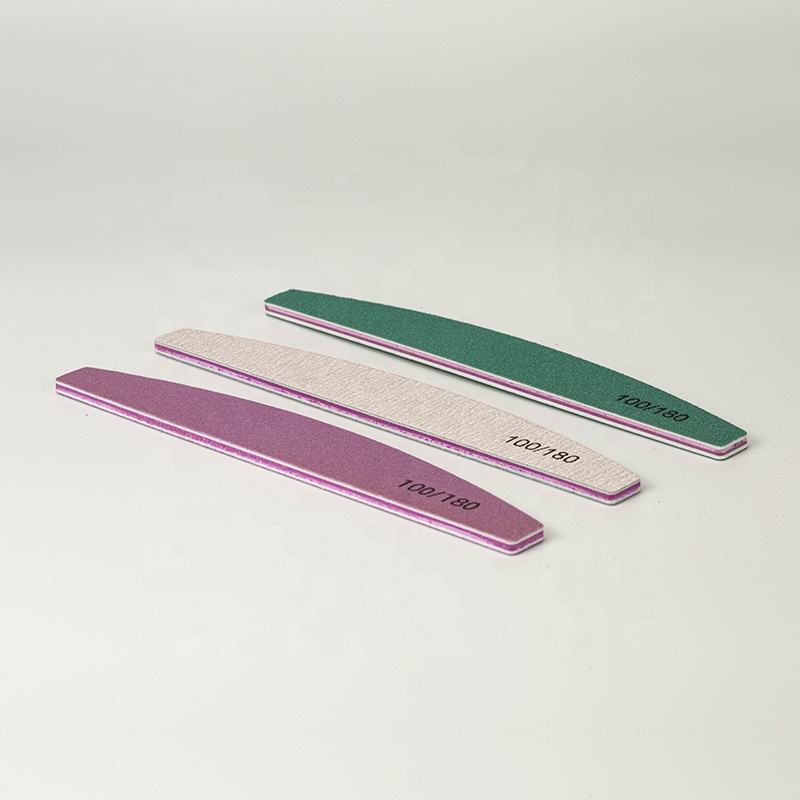 Lima de uñas profesional, media luna, verde, púrpura, cebra, 100, 180, grano, 100/180, 100/100