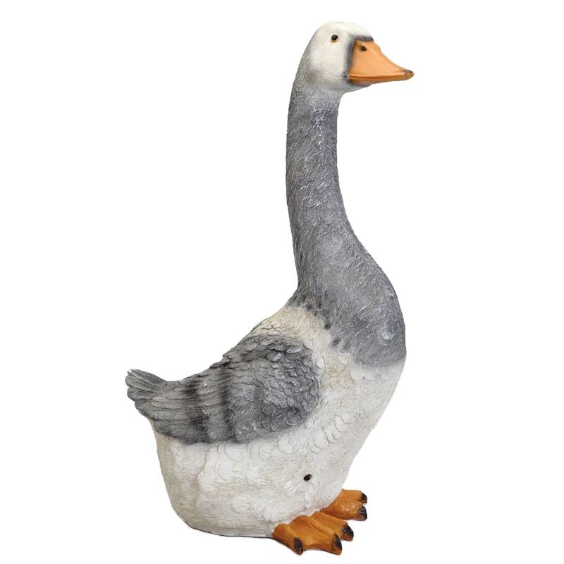 Escultura de Ganso Gris de Poliresina Pintada a Mano, Decoración de Exterior de Tamaño Real