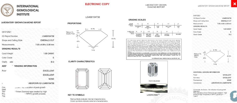 Alta calidad 1,05 quilates corte esmeralda E Color SI2 laboratorio cultivado diamante indio IGI certificado directo de la India-Piedras preciosas sueltas