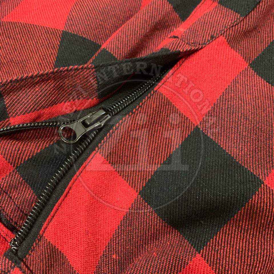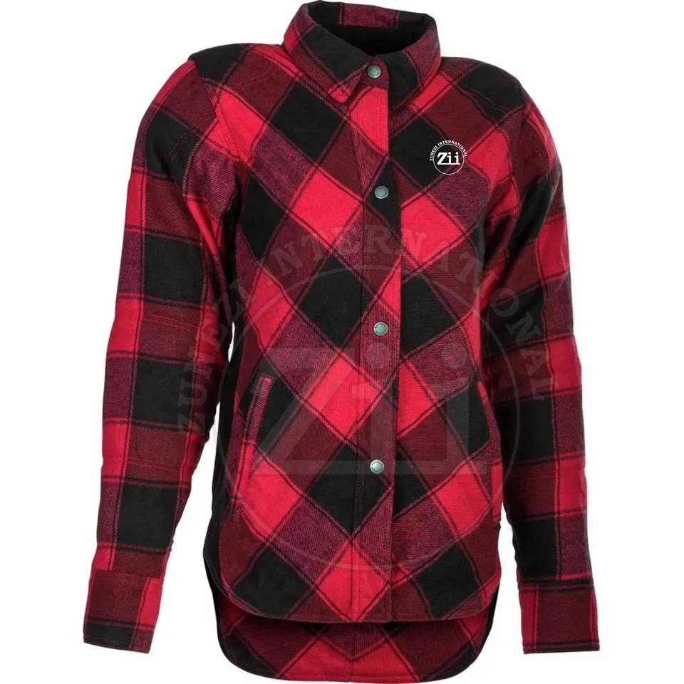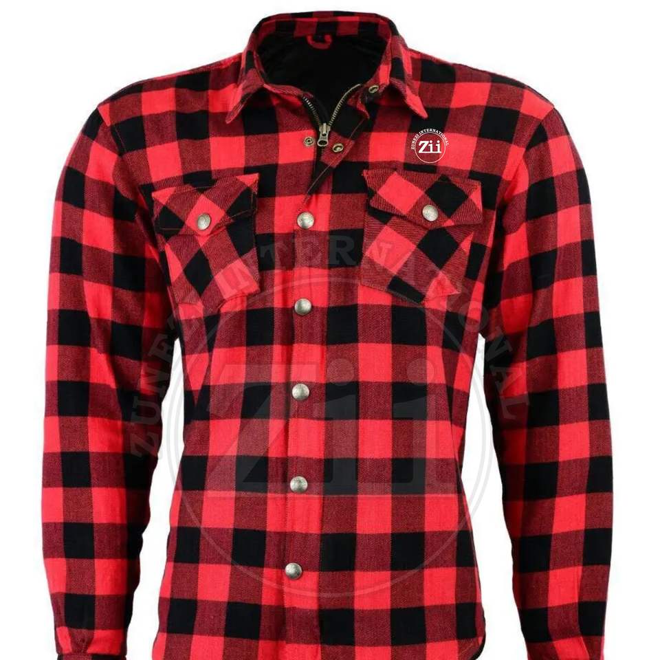 Camiseta de carreras a cuadros de manga larga con cremallera frontal y patrón de cuadros oscuros informal de franela de peso pesado para hombre de alta calidad