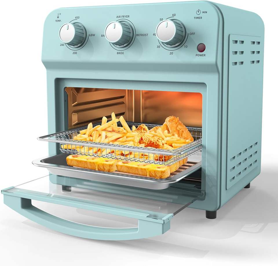 Control de termostato ajustable, Pantalla LCD, Superficie de cocción antiadherente, Protección contra sobrecalentamiento, Con luz indicadora, Con mirilla de observacion, Freidora de aire, asado, horneado y deshidratador en unoFunción