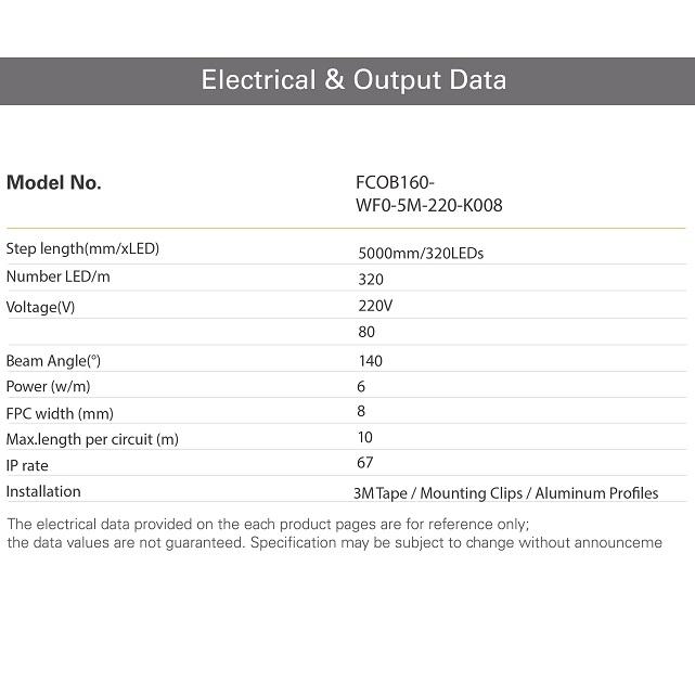 Número de Modelo:FCOB Strips High Voltage Series COB-320-8mm-10m