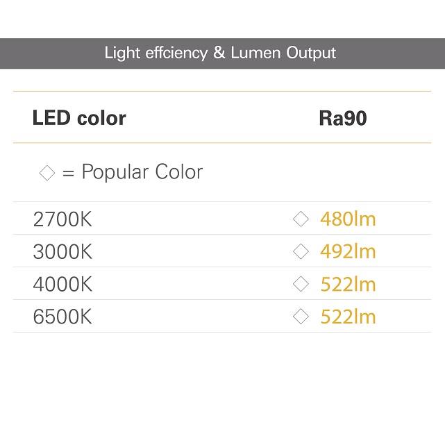 Flujo luminoso de la lámpara (lm):480lm, 492lm, 522lm, 522lm