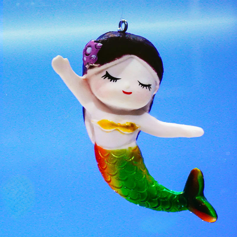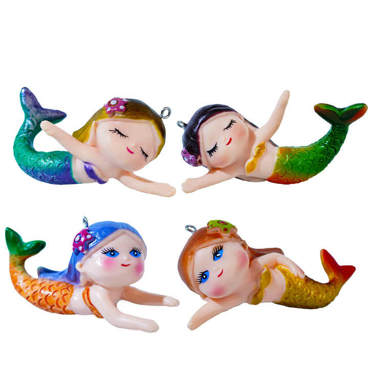 Gran oferta, adorno de muñeca de sirena de dibujos animados, decoración flotante de resina para pecera, hecho de plástico duradero