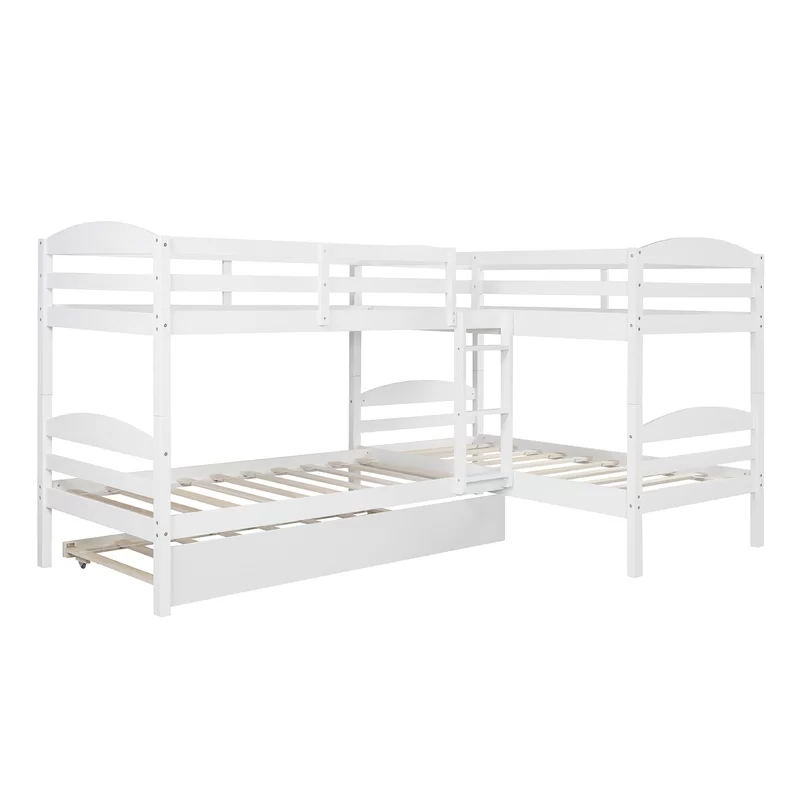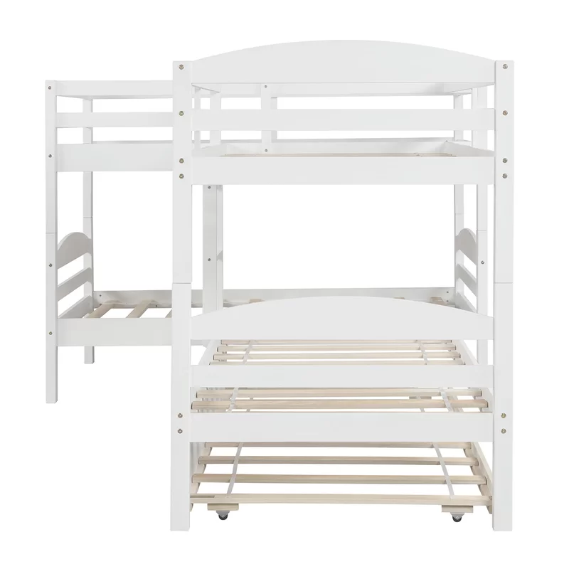Nombre del producto:Doble de madera blanco sobre litera gemela de 4 niveles en forma de L con cama