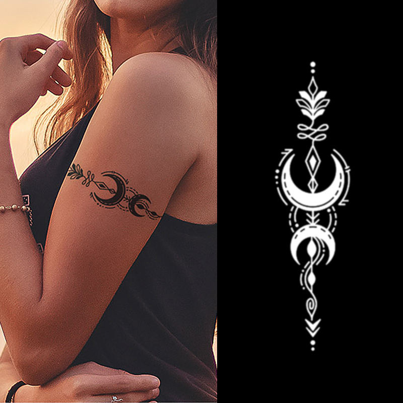 Venta caliente personalizado Henna tatuaje pegatina para mujeres Durable impermeable Luna flor temporal transferencia de agua impresión diseño Sexy