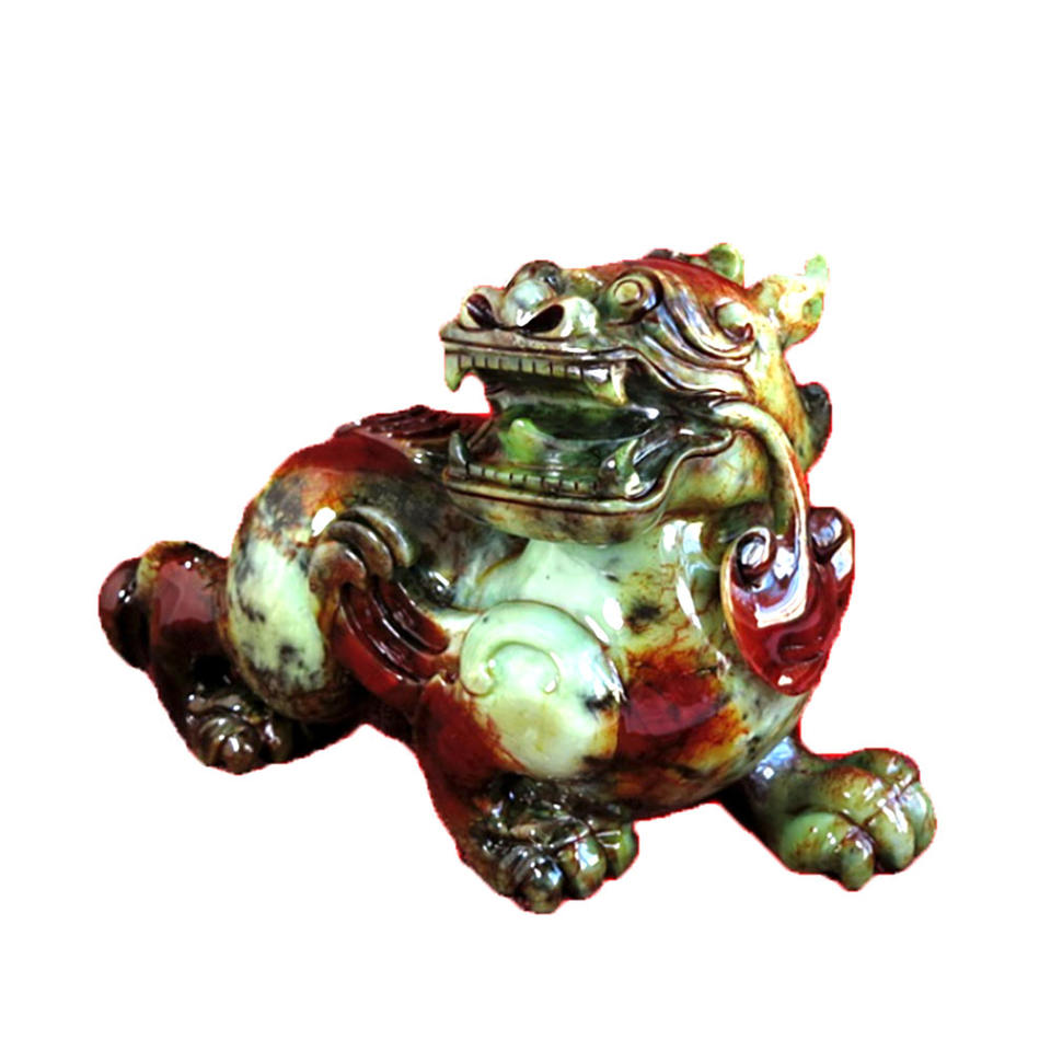 Venta caliente Jade Natural tallado Pixiu estatua Feng Shui
