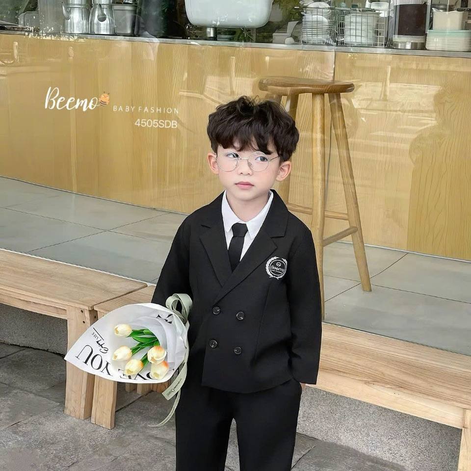 Chaleco de estudiante masculino coreano de tendencia caliente con corbata Conjunto formal de 3 piezas de invierno para bebés Niños En stock Conjuntos de ropa de bebé de Vietnam