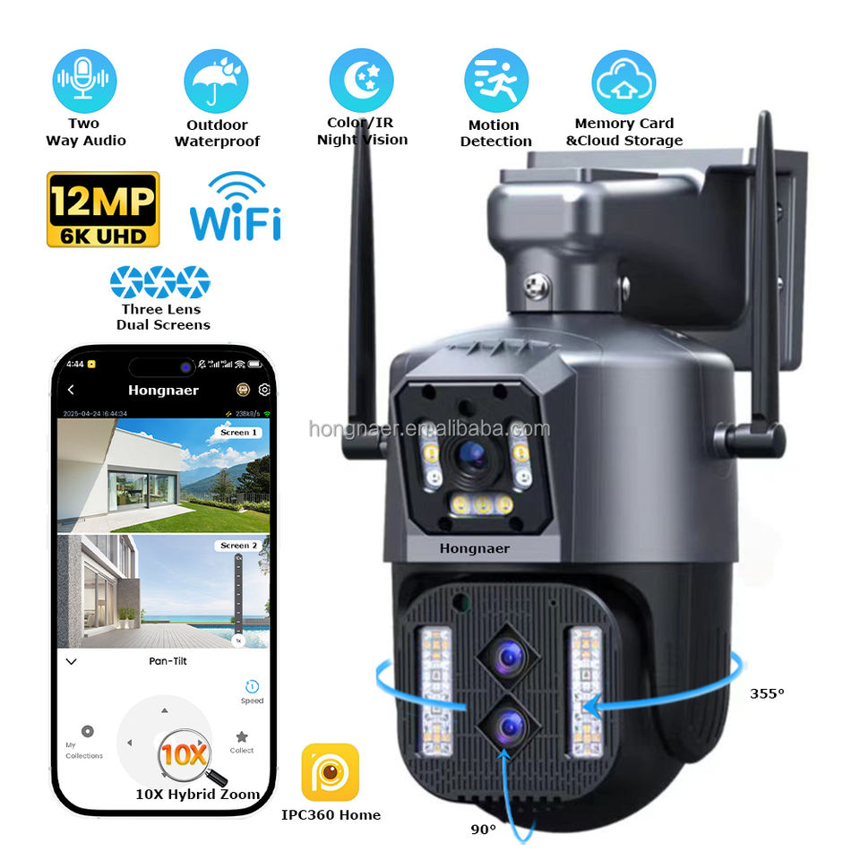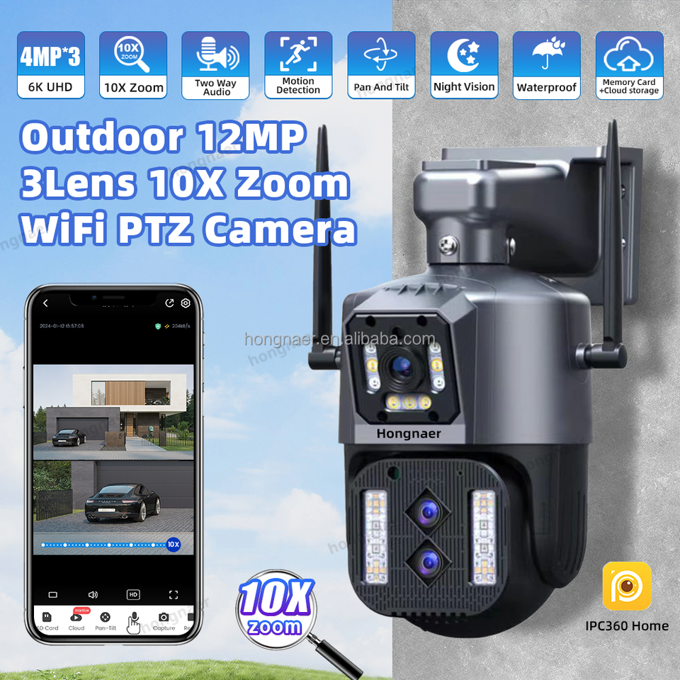 Nombre del producto:Cámara CCTV PTZ WiFi para exteriores con 3 lentes y zoom 10X
