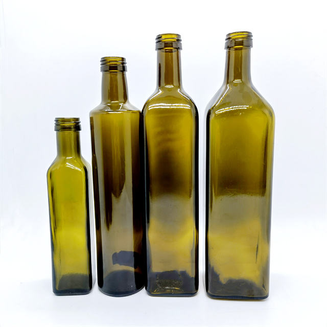 En Existencia, Botella de Vidrio para Aceite de Cocina, Cuadrada y Redonda, Verde Oscuro, de 250 ml, 500 ml, 750 ml, 1000 ml, Botella Vacía para Aceite de Oliva con Tapa de Rosca