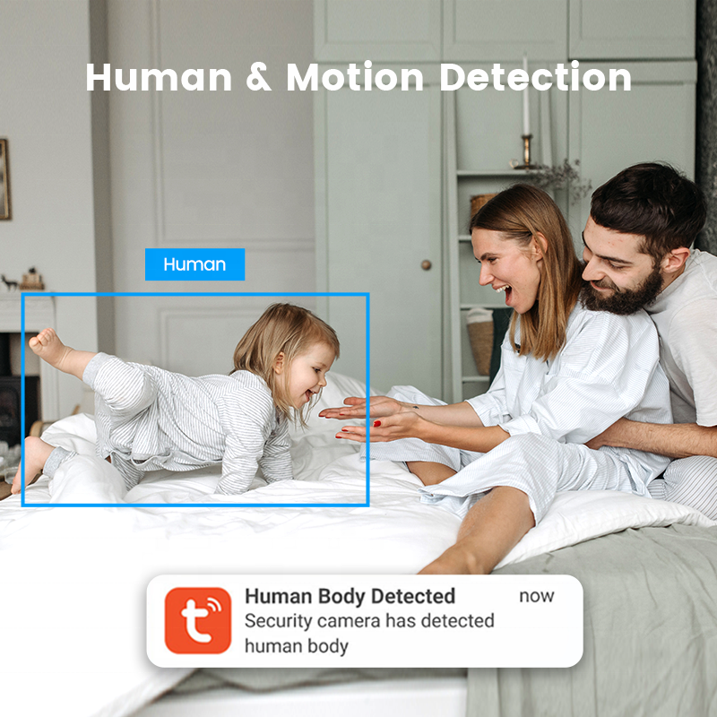 PAN-TILT, Construido-En sirena, Visión nocturna, De Audio de dos vías, De detección de sonido, Detección de movimiento, Alarm, Tuya app, With SD Card, AI Human Detection, Cloud Storage, p2p Remote ViewCaracterísticas especiales