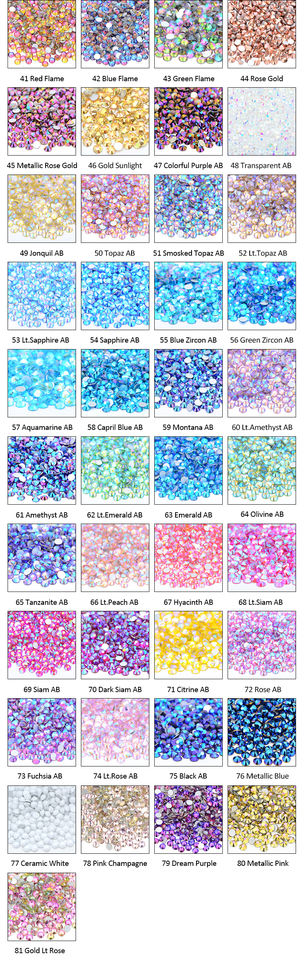 Tamaño:SS3 SS4 SS5 SS6 SS8 SS10 SS12 Rhinestones cristalinos