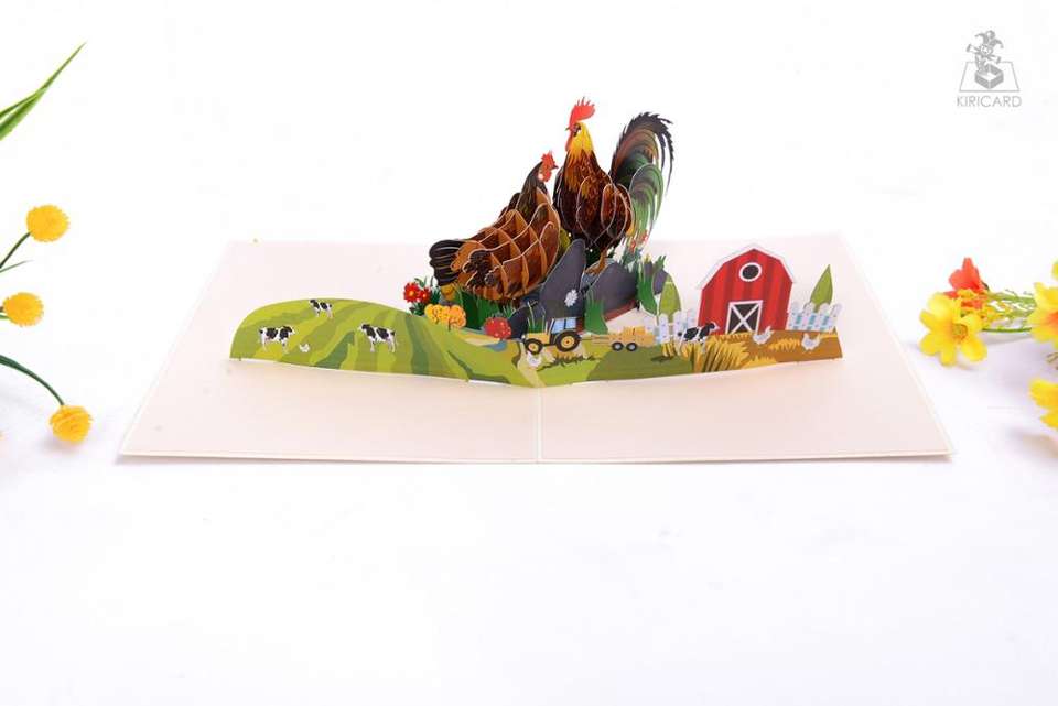 Name:Rooster and Hen Pop Up Card