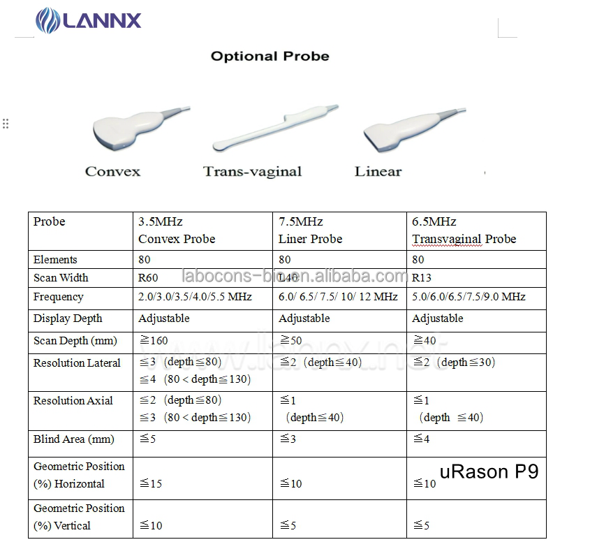 Urason digital lleno P9 del ultrasonido de B/WPropiedades