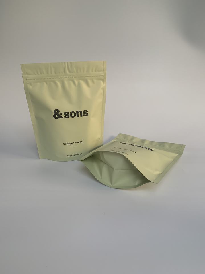 Artículo:Bolsas de colágeno para el envasado de productos de proteína en polvo de pie bolsa