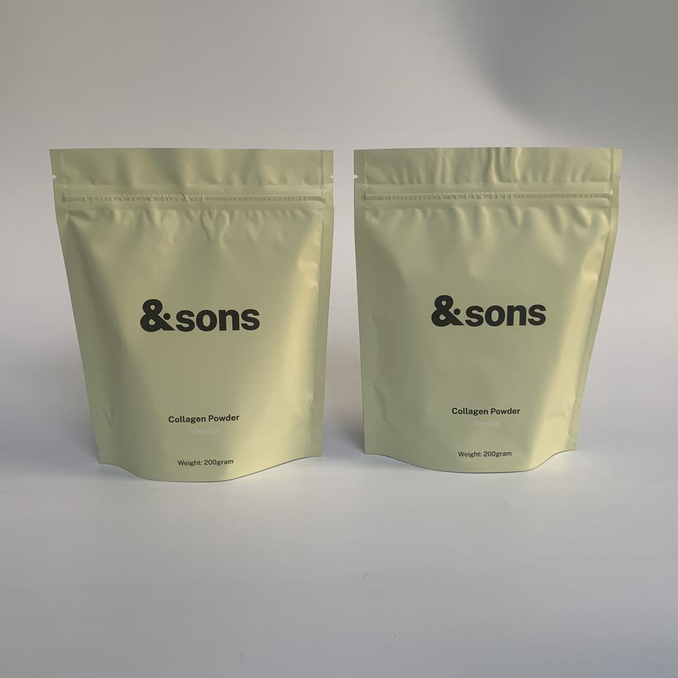 Bajo MOQ Etiqueta Privada 200g polvo de colágeno de bolsas para embalaje de polvo de proteína de productos bolsas de pie