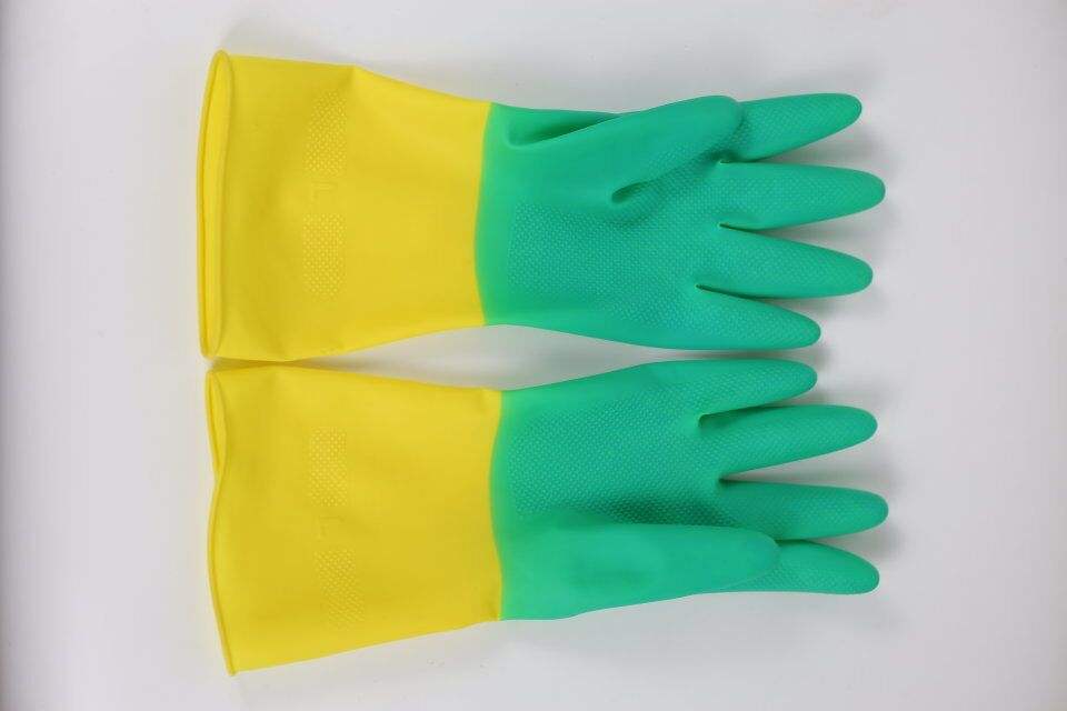 Nombre:Guantes de látex para el hogar bi color rojo y amarillo de látex natural
