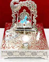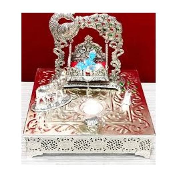 Pequeño Jhula Krishna con Chowki de plata alemánNombre del producto