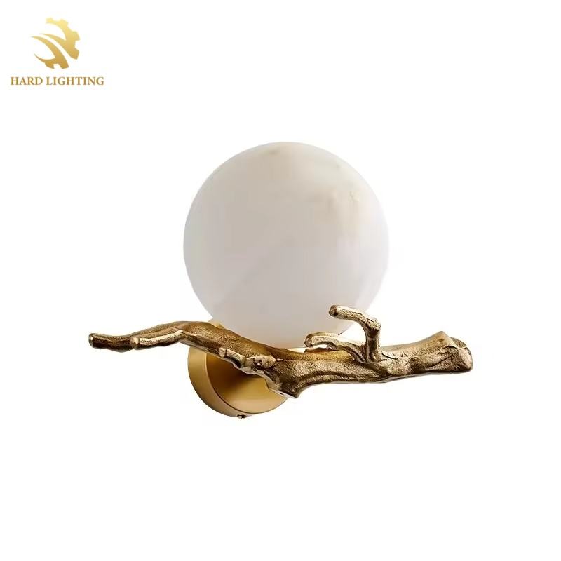Lámpara de pared de piedra de mármol de cobre de lujo, arte, Villa, sala de estar, dormitorio, candelabro de pared