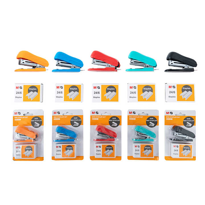 M & G-minimáquina moldeadora colorida, 24/6, 5 colores vívidos con grapas, escuela, oficina, empresa, suministros de papelería, grapadora, 500 Uds.