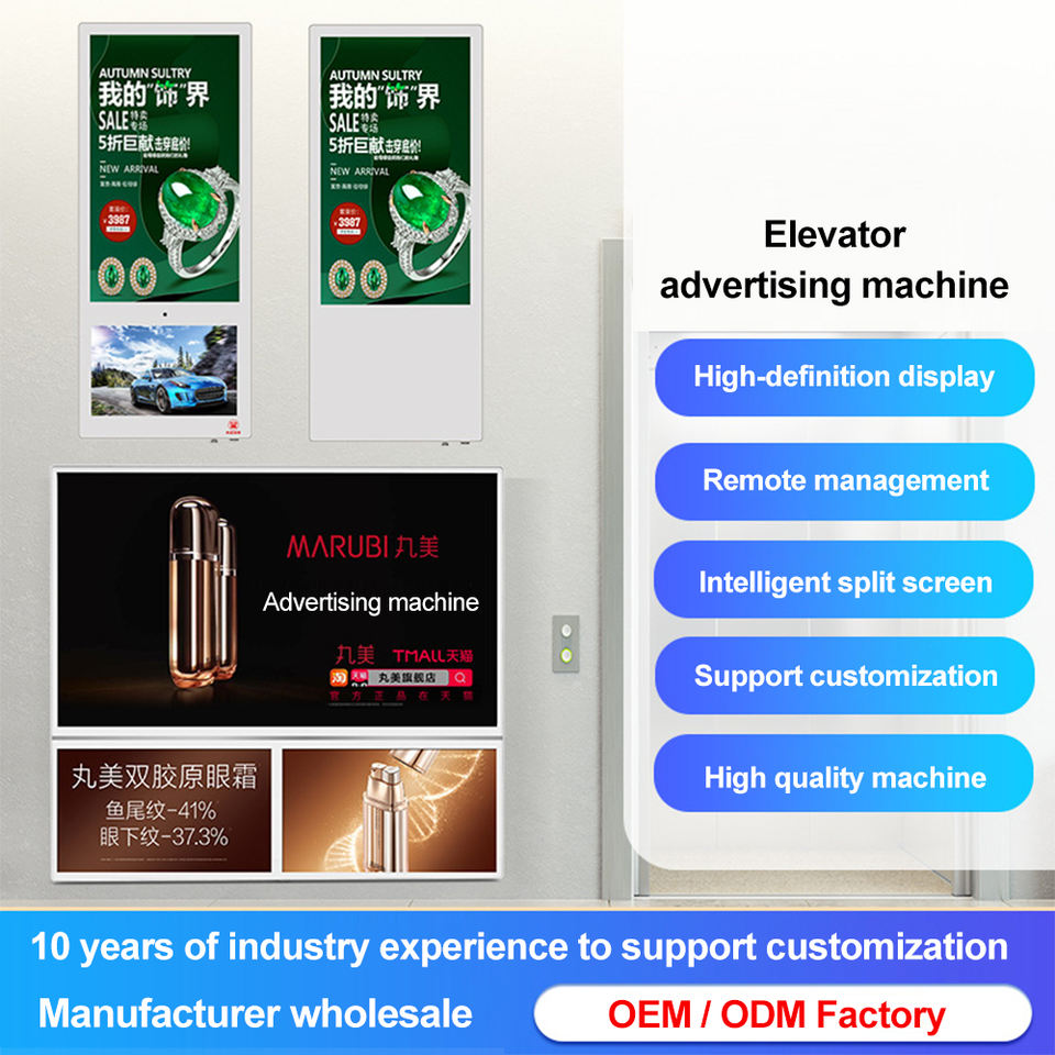Mall Vertical 19/21.5/28/32 pulgadas Ascensor montado en la pared Máquina de publicidad Transmisión directa Catering Touch Hd Pantalla comercial
