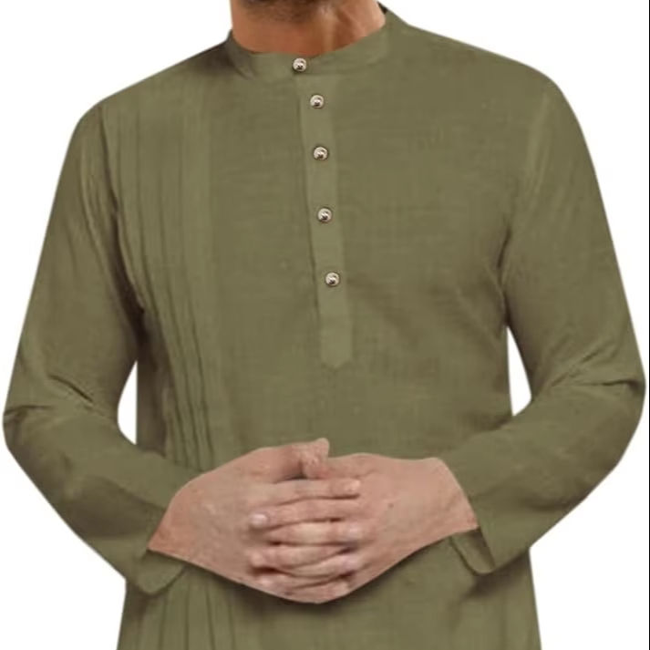 Kaftan Kurta de algodón de talla grande para hombre, bata informal de manga larga con cuello levantado Shalwar Kameez para musulmán, atuendo tradicional asiático OEM