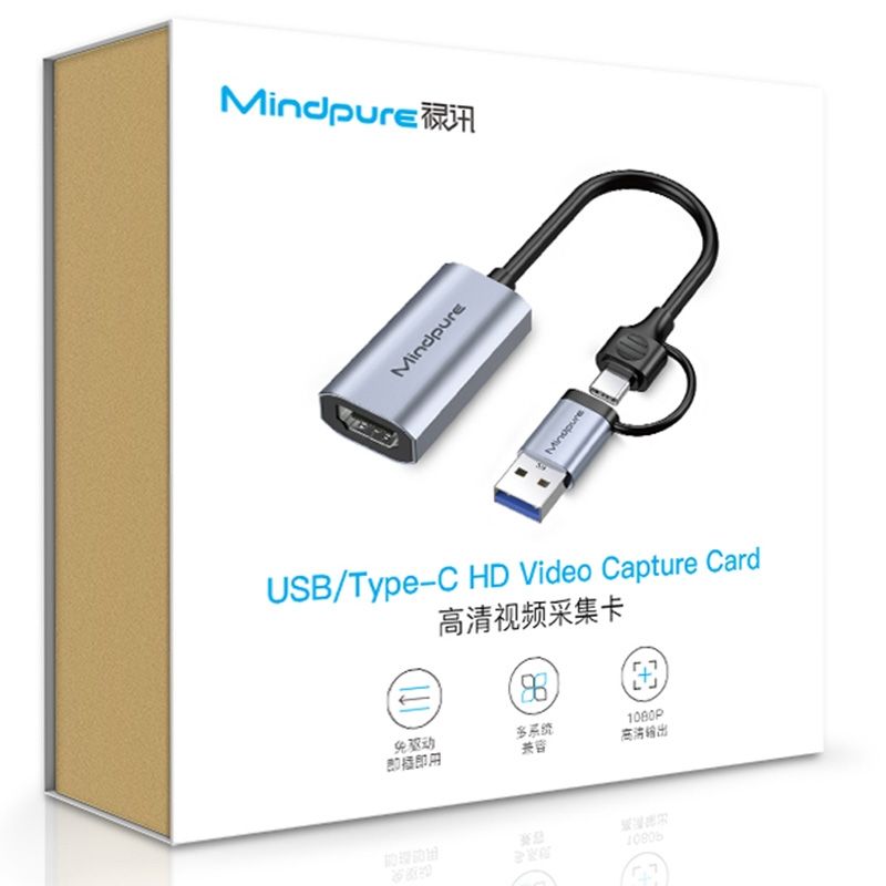 Mindpure 4K 2 en 1 Tipo C USB 3.0 Tarjeta de captura de audio y video HDTV chapada en oro de aleación de aluminio para grabación y transmisión en vivo para