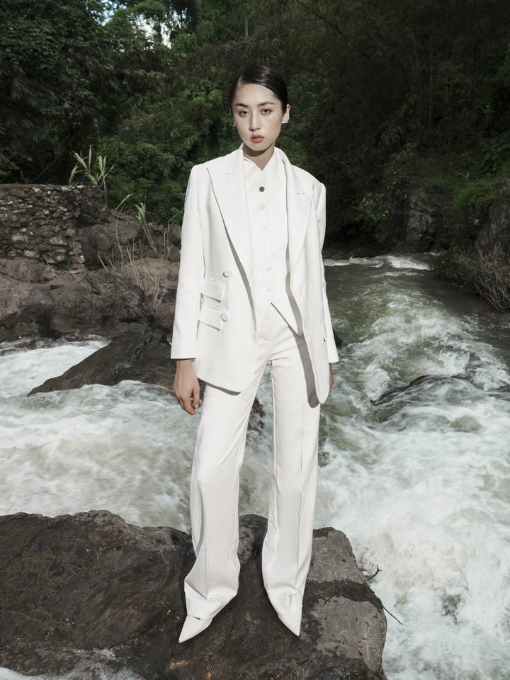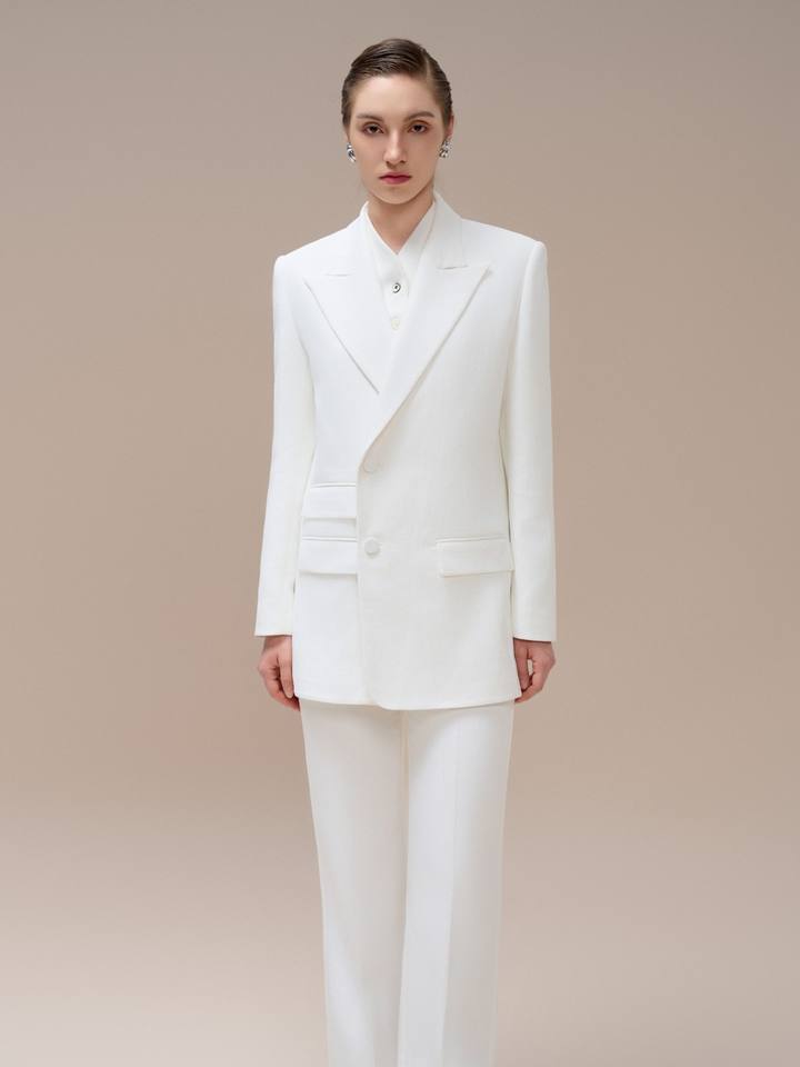 Blazers de estilo minimalista para mujer, 3 bolsillos delanteros, chaqueta con muescas Jocelyn, tela de telar de madera, ropa de mujer, mayorista Whiteant