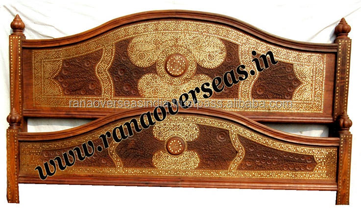 Nombre del producto:Cama doble de madera moderna con incrustaciones de latón