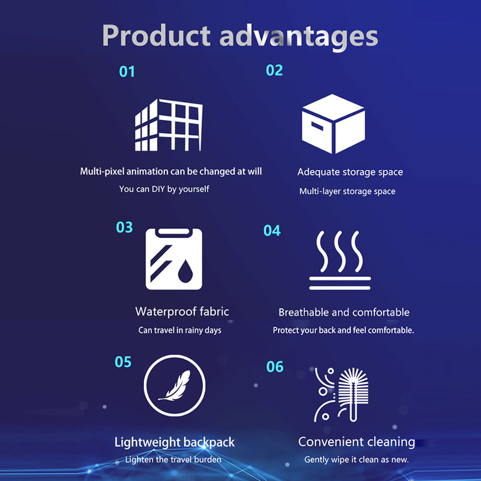 Nombre del producto:Pantalla LED transfronteriza de tres generaciones mochila creativa