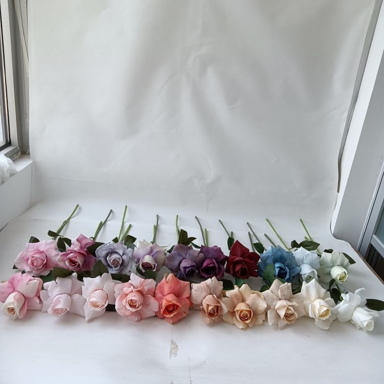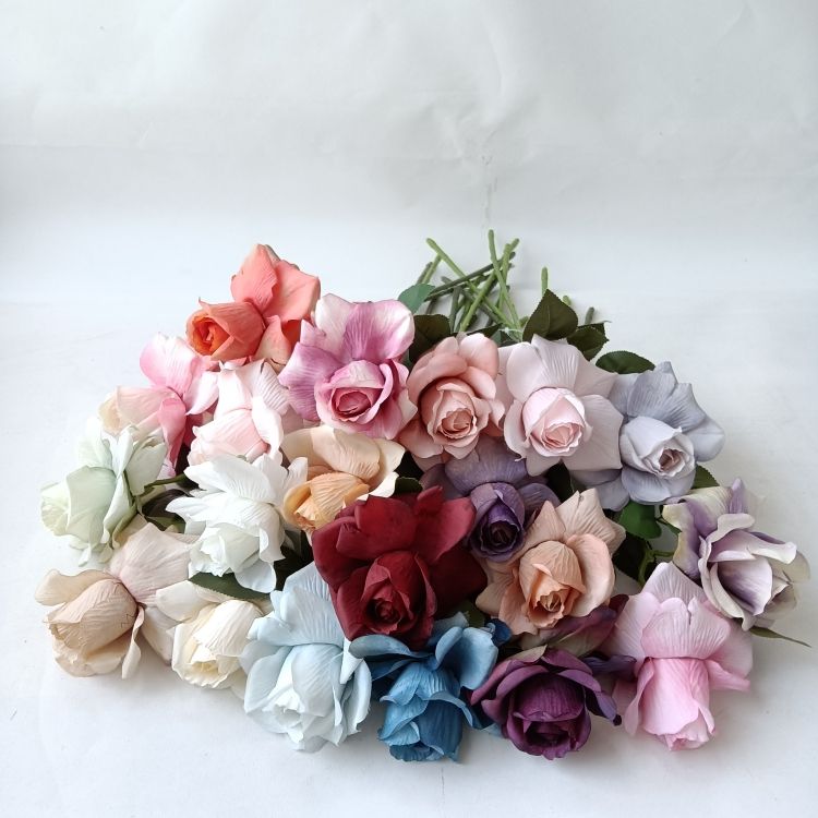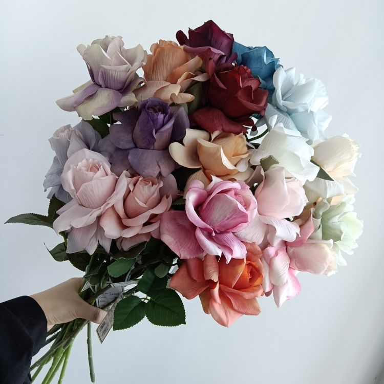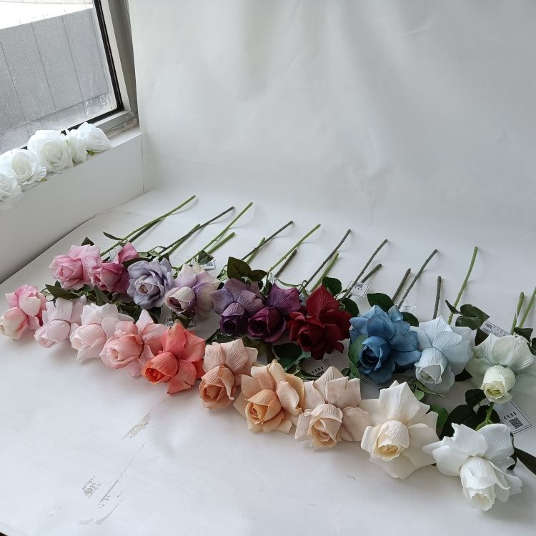 Flor de seda artificial realista hecha a mano, rosa de un solo tallo, decoración de un solo tallo, nuevo estilo, flor de Rosa Popular