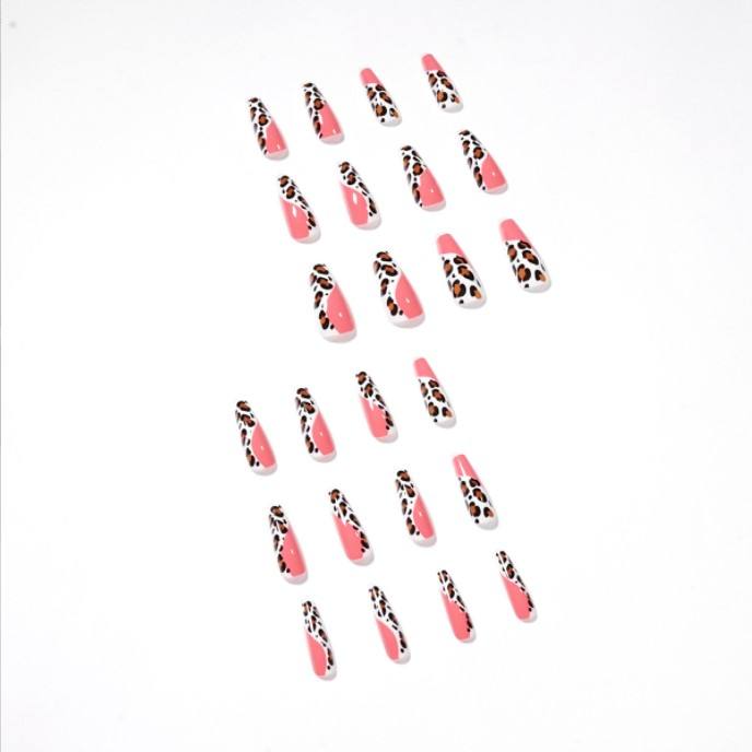 OEM nuevo 3D largo ataúd leopardo diseño francés Prensa en uñas postizas cubierta completa Ins uñas artificiales completo Abs manicura 24PCs