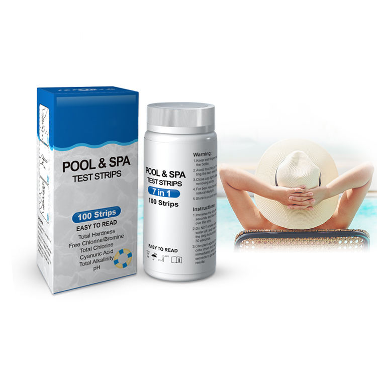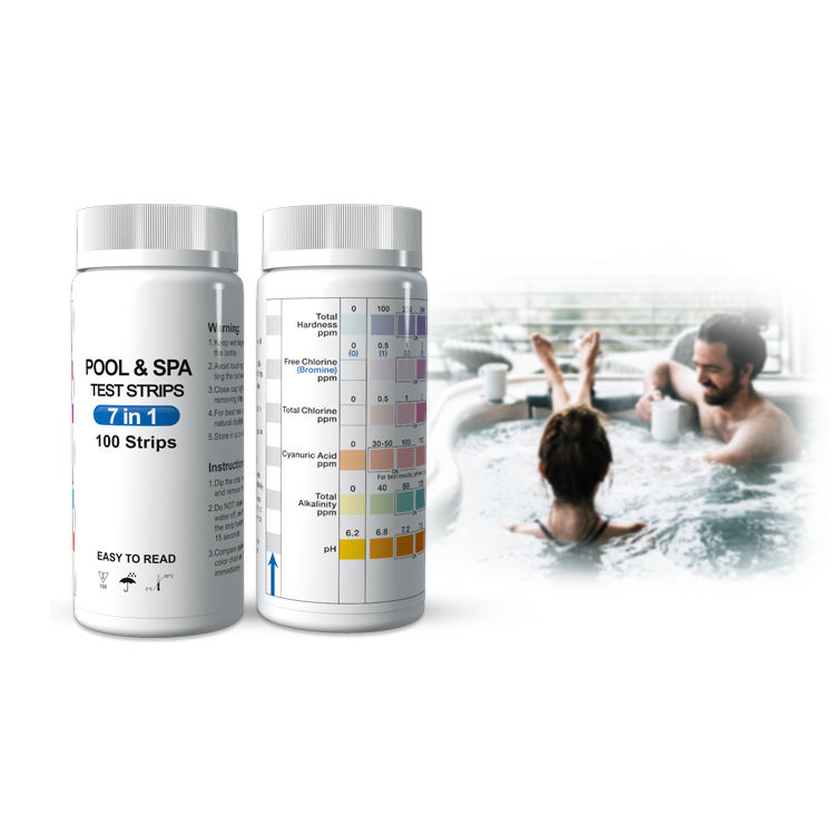 Kit de prueba para piscinas: cloro, 7 pruebas, tiras reactivas para agua de piscinas y spas.Nombre del Producto