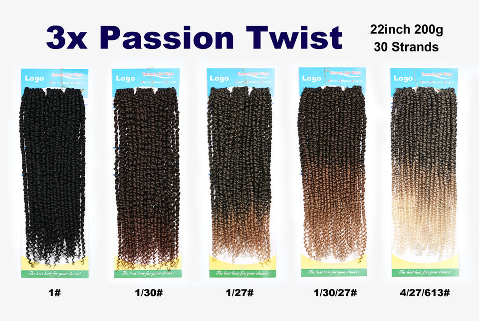 Ombre Rubio pre looped 3x Passion Twist 30 hebras largo rizado onda de agua trenzas de ganchillo cabello trenzado sintético al por mayor