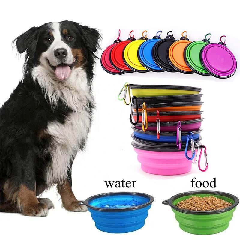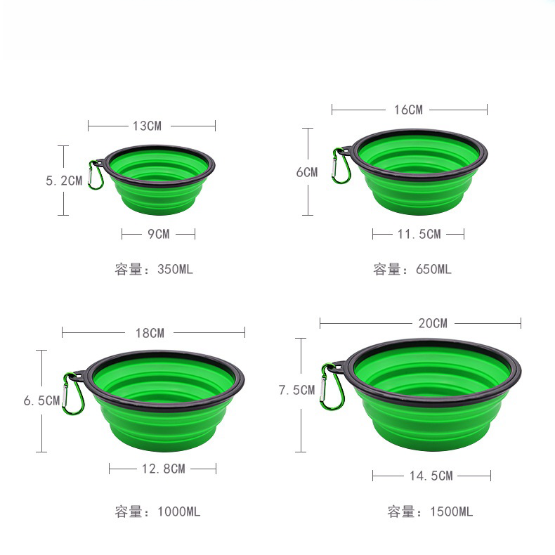 Al Aire Libre de grado alimenticio de silicona TPE seco y húmedo plegable portátil plato de viaje comida para mascotas agua plegable perro cuenco con mosquetón