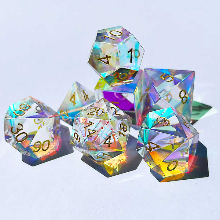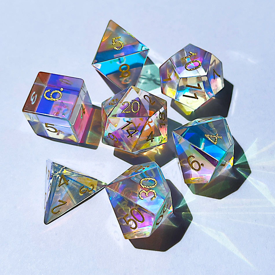 Juego de dados prismáticos de cristal | 7 dados poliédricos | Mazmorras y dragones | DND