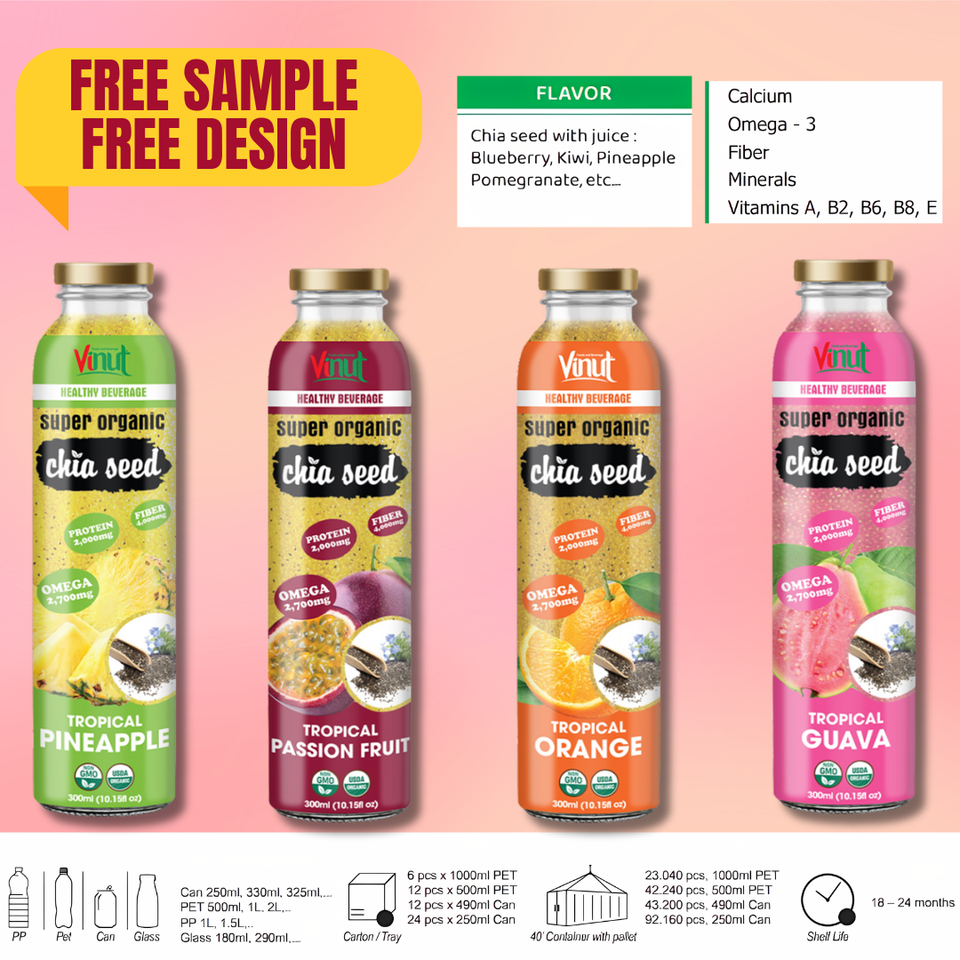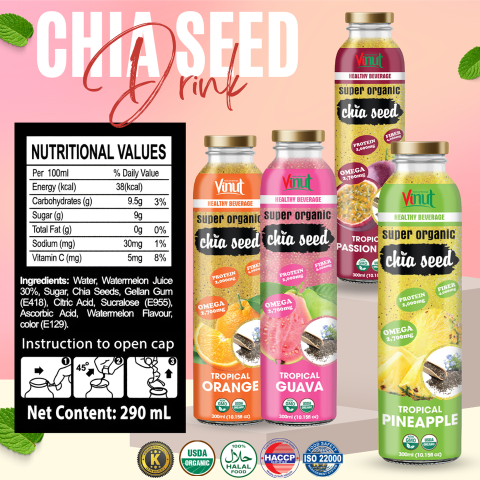 Ingredientes:Bebida Semilla de Chía de jugo de naranja