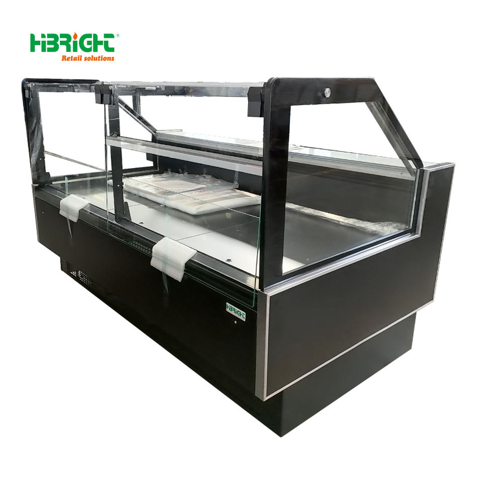 Refrigerante R290 de temperatura única para supermercado Deli, nevera para carne, pescado, comida, vidrio plano, enchufable, pantalla para carne y pescado