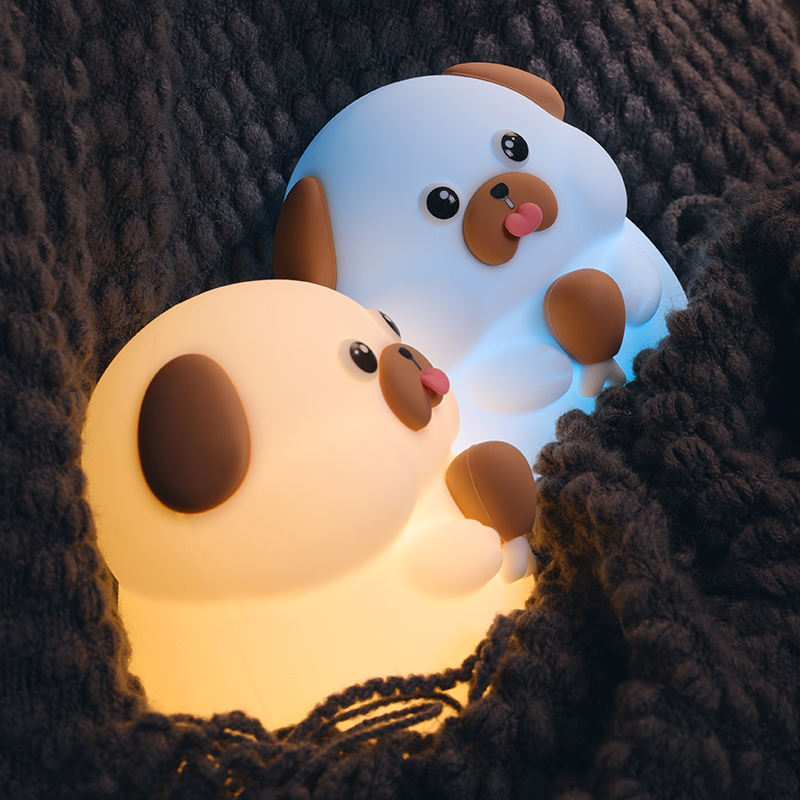 Luz LED de noche recargable para niños, perro glotón, forma de conejo de silicona, Control de Sensor táctil, 5V, luz blanca cálida, uso en el hogar y el Hotel