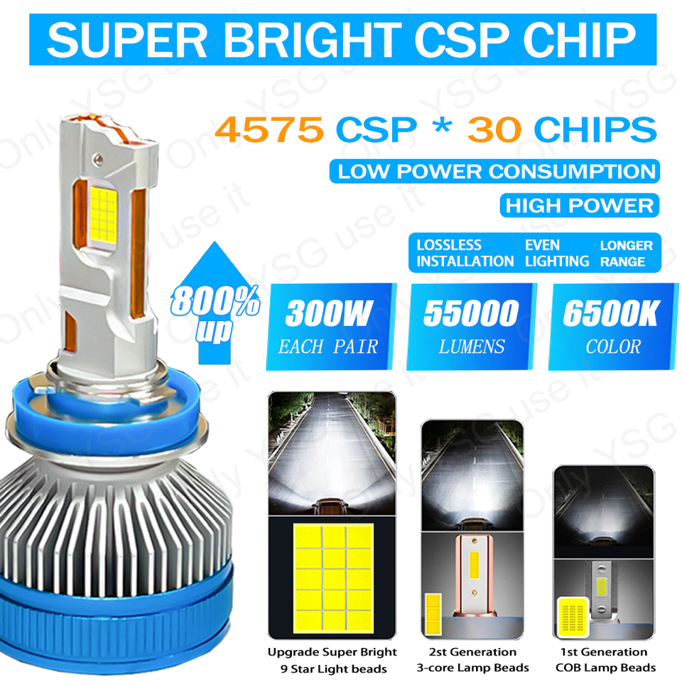 Vida útil:+50000 Horas Faro LED Más Brillante de 300W 12V 55000LM con Chip CSP 4575