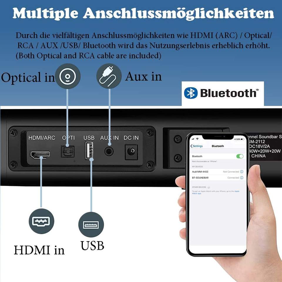 Función:BT/USB/H-DMI(ARC)/AUX/óptico/control remoto