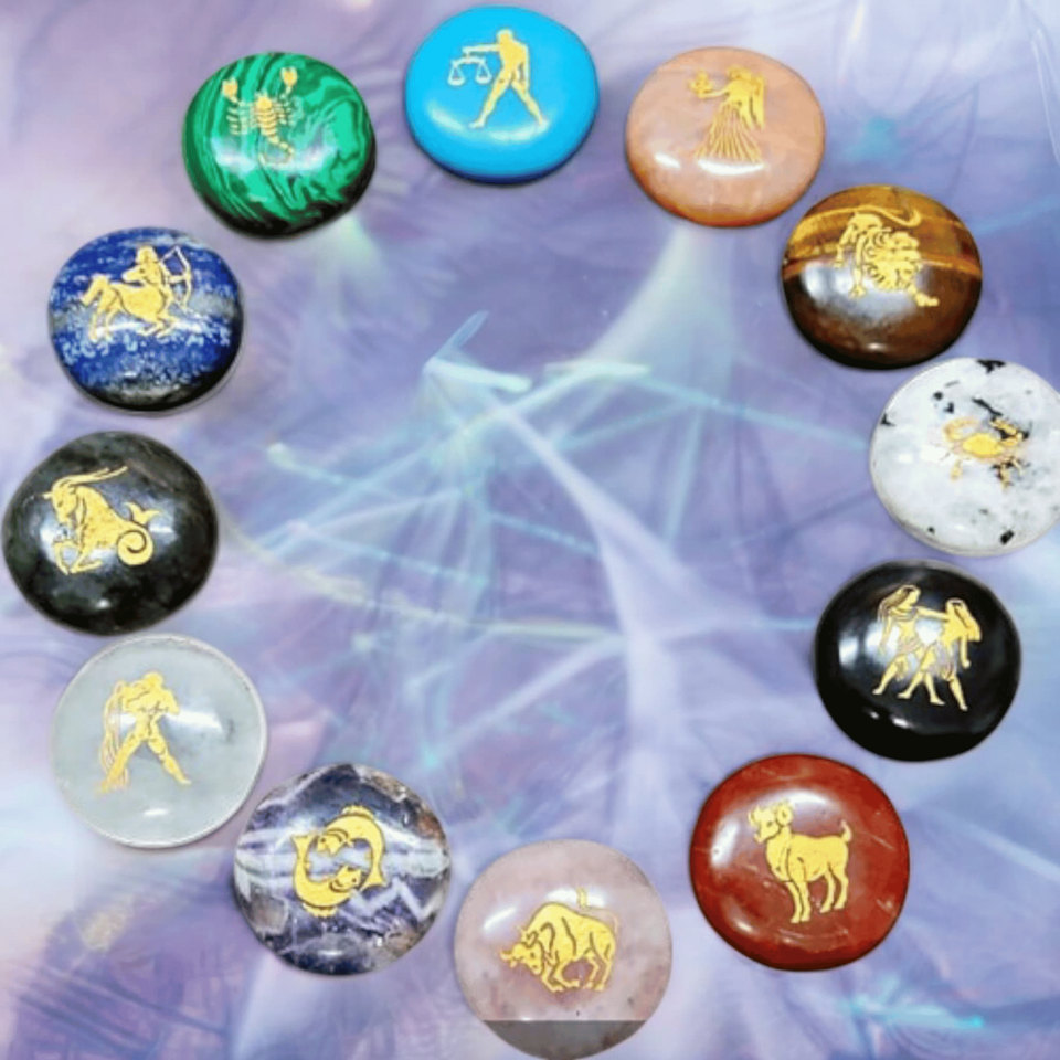 Número de Modelo:#Set of 12 Zodiac Sign Engraved Stones