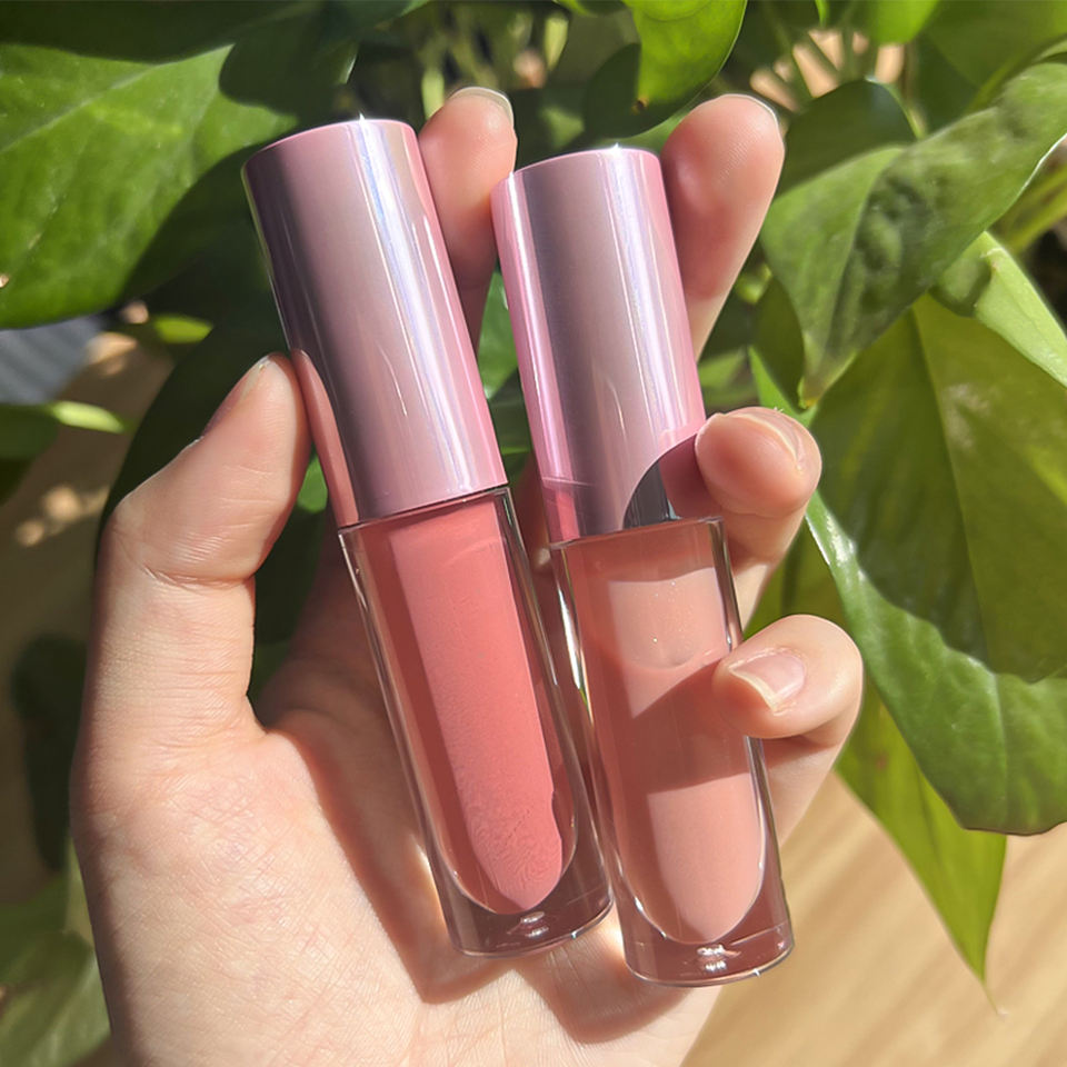 Brillo de labios rosa brillante Personaliza tu logotipo Brillo de labios no pegajoso Brillo de labios Líquido vegano Acabado mate Lápiz labial Tubos vacíos