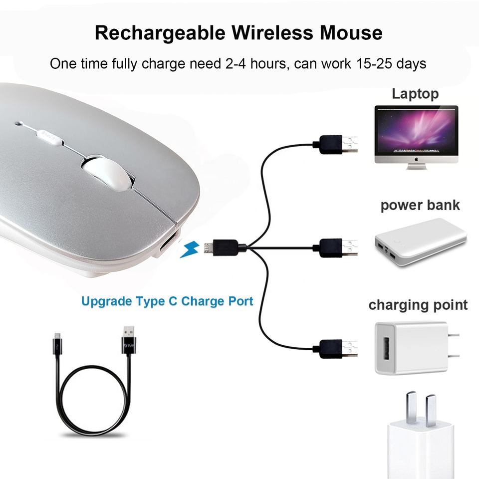 Ratón Inalámbrico 2.4G/BT3.0/BT5.2 de Tres Modos, Recargable Tipo C, Silencioso, para iPhone, iPad, Macbook, Personalizable