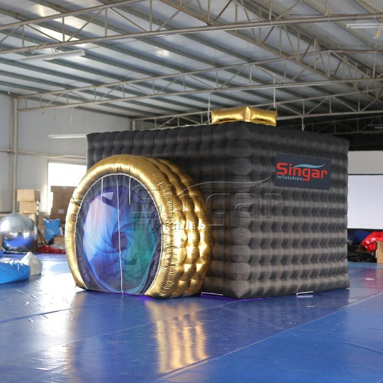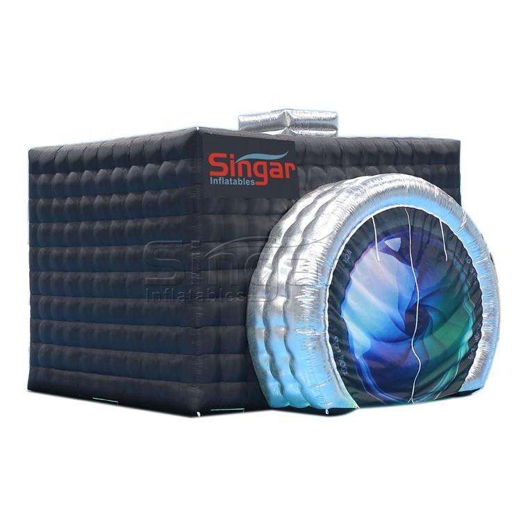 Cabina de fotos inflable con luz LED, fotomatón con forma de cámara réflex de un solo lente, cambio de color