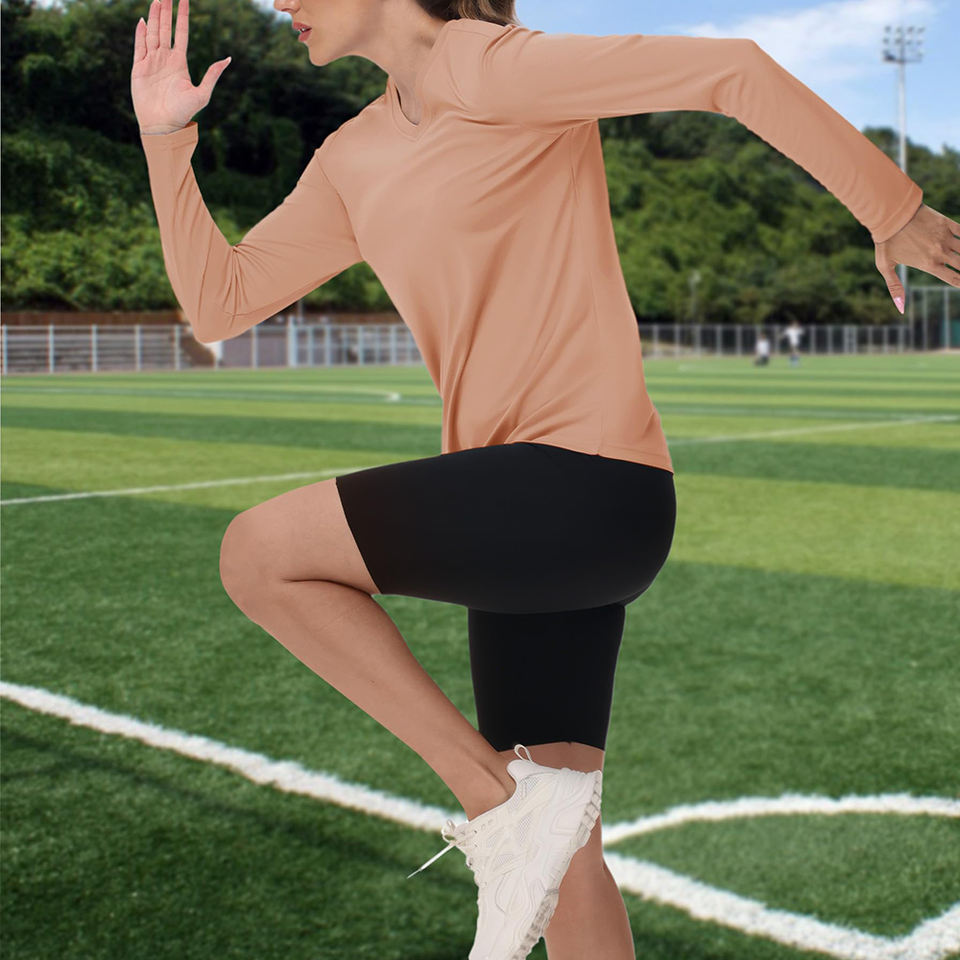 Camisas ajustadas de manga larga ajustadas con cuello en V para mujer, camisas transpirables de algodón de doble cara para mujer, ropa de calle antiarrugas
