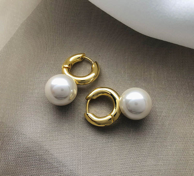 Pendientes de aro Vintage franceses de oro de 18 quilates Europeo Americano de alta calidad, hebilla de oreja de bucle pequeño, forma de bola chapada en perlas, Estilo clásico