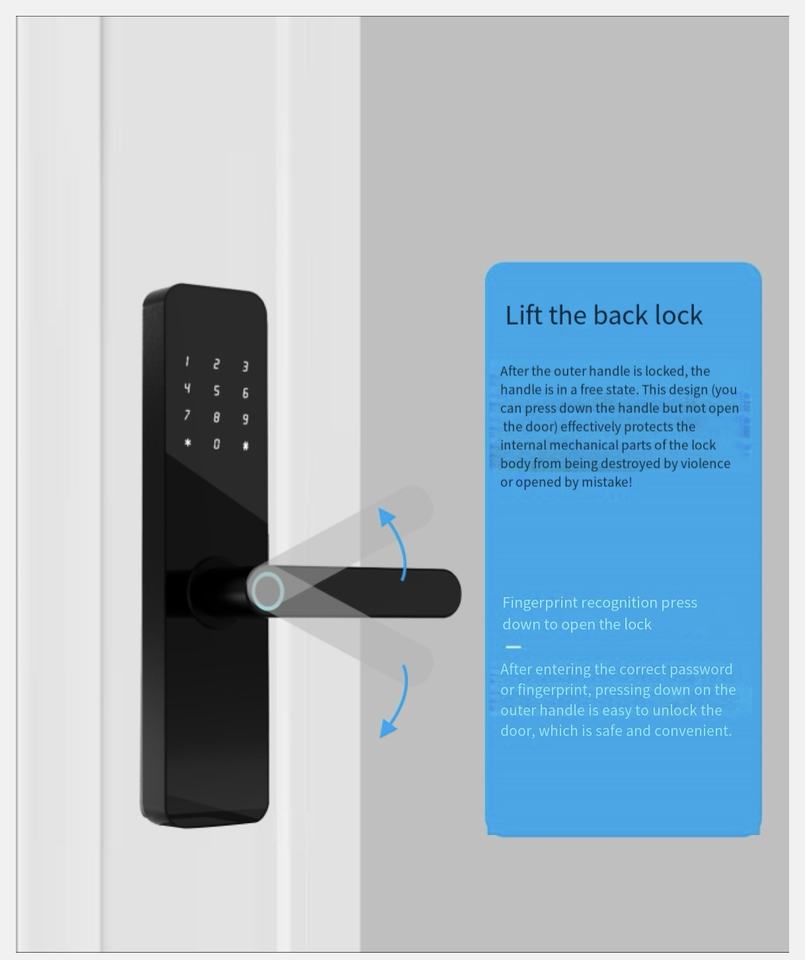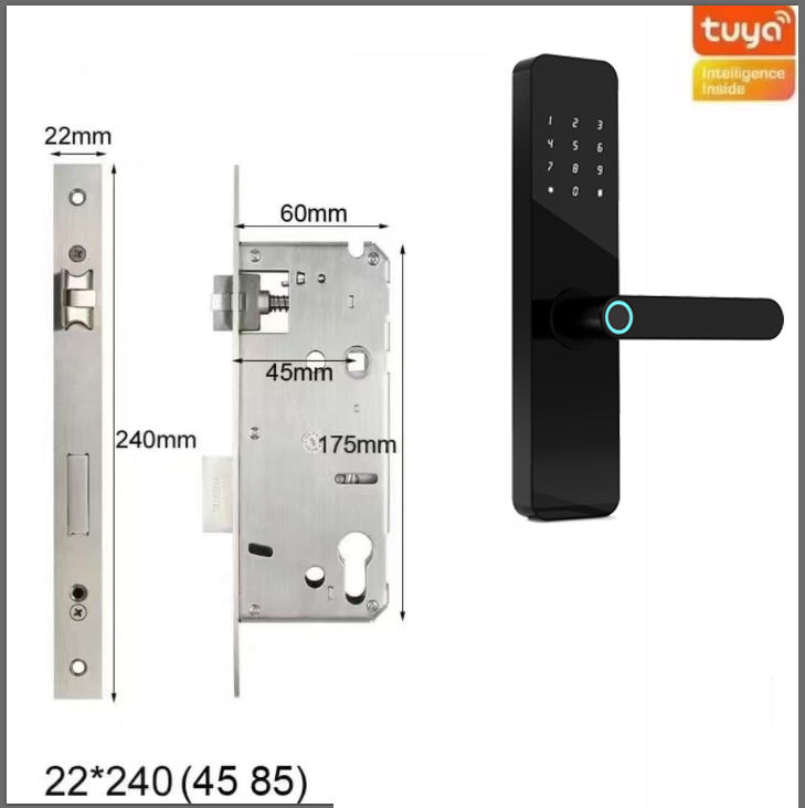 Cerradura Inteligente WiFi Tuya para Puerta, con Huella Dactilar, Sin Llave, Seguridad Inteligente, Manija de Palanca, Dorado+Negro, 100 Huellas Dactilares